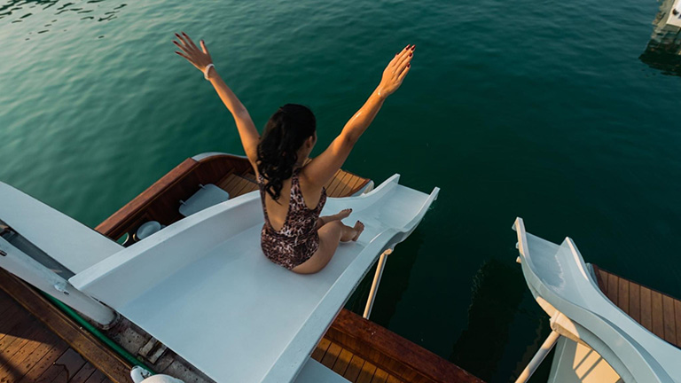 - Võng lưới: Được coi là “đặc sản” chỉ duy nhất du thuyền Catamaran sở hữu. Bởi vậy bạn vừa có thể chụp bức ảnh độc đáo ở đây, vừa có thể trượt từ trên cao xuống.