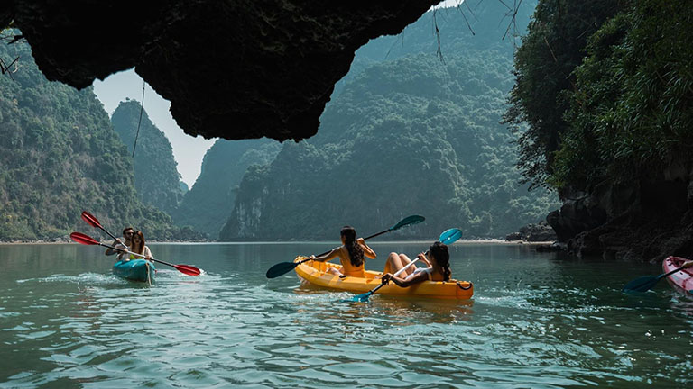 - Chèo thuyền kayak: Giúp rèn luyện sức khoẻ, mở mang tầm mắt với những địa điểm tham quan đẹp như tranh khi khám phá vịnh Hạ Long, vịnh Lan Hạ.