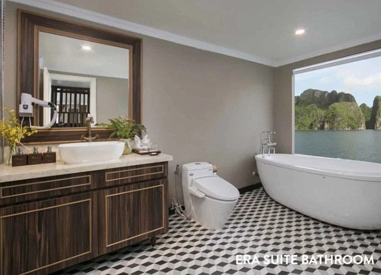 Du thuyền Era Cát Bà được chia thành 4 hạng phòng khác nhau, trong đó phòng Terrace Suite là nhỏ nhất khoảng 47m2, phòng Era Suite rộng nhất với khoảng 74m2 (bao gồm cả phòng tắm & ban công). Các tiện nghi chính giúp du khách cảm thấy thoải mái nhất gồm: