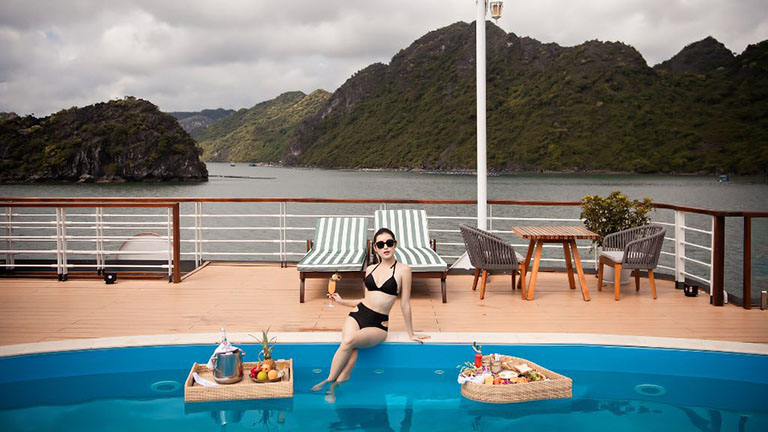 Elite of the Seas được biết đến là du thuyền 6 sao có bể bơi dát vàng đầu tiên tại Việt Nam. Chỉ điều này thôi cũng đủ hấp dẫn… -