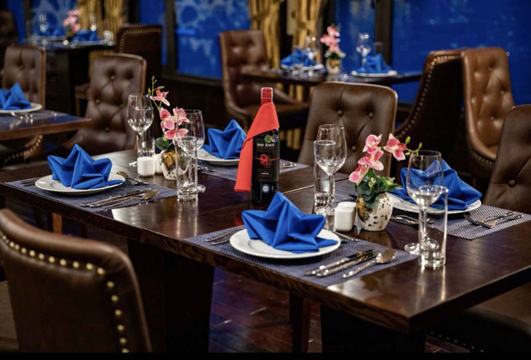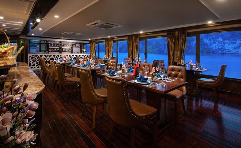 – Nhà hàng La Pandora có sức chứa lên tới 100 người rất lý tưởng cho các hoạt động vui chơi, giải trí tập thể hoặc tổ chức sự kiện hội thảo. Các món ăn phục vụ đa dạng do những đầu bếp chuyên nghiệp thực hiện mang tới hương vị Á- Âu hấp dẫn. Ngoài ra, quầy bar trên du thuyền cũng là nơi siêu lý tưởng cho buổi tối hẹn hò lý tưởng. Nơi đây có các loại đồ uống nổi tiếng trên thế giới từ nước ngọt, rượu vang và rượu mạnh.