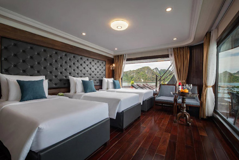 – Phòng Panorama Suite Window: View hướng biển. Diện tích khoảng 45m2. Trong phòng có 3 giường đơn.