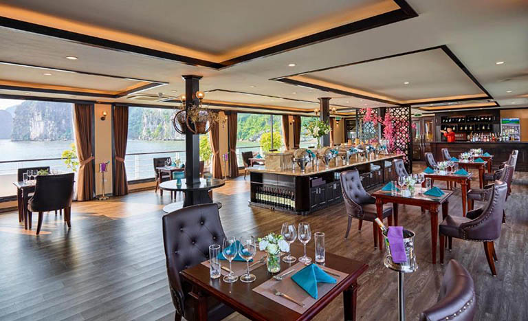– 06h45: Quý khách thưởng thức bữa ăn sáng buffet đa dạng, trong khi tàu quay trở lại cầu cảng Gia Luận.