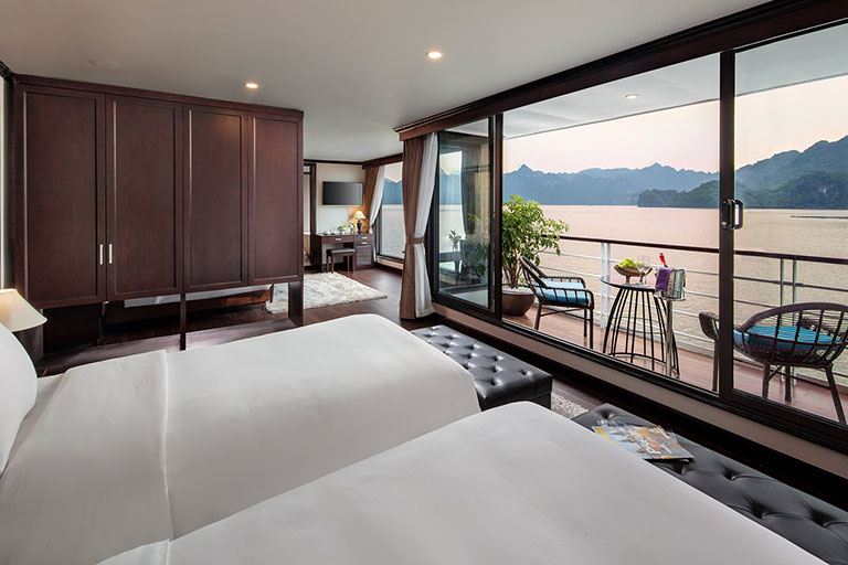 – Phòng Ocean Suite Balcony: Nằm ở boong thứ hai của du thuyền, rộng khoảng 30m2, có 2 giường đơn hoặc 1 giường đơn.