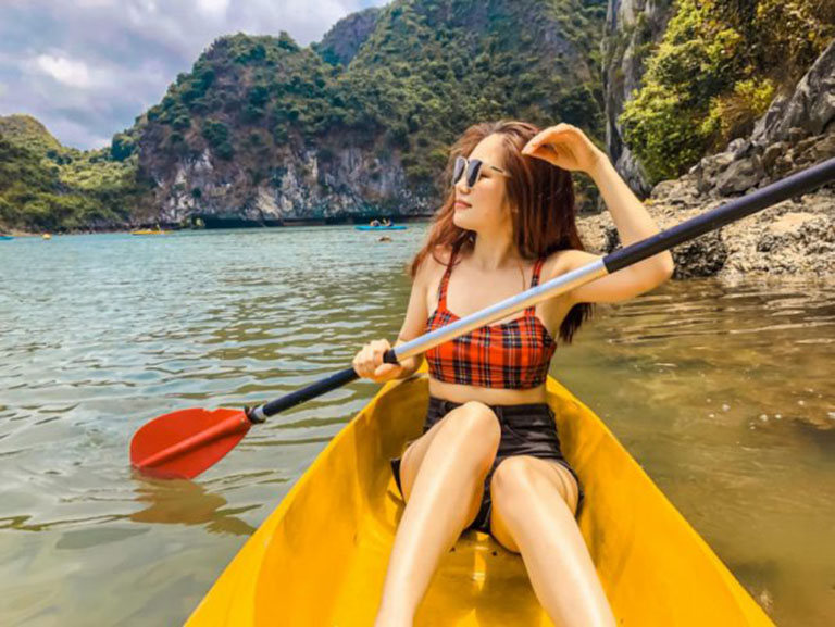 – 13h30: Quý khách có 2 lựa chọn. Một là tham quan hang Sáng Tối. Hai là đến thăm đảo Ba Trái Đào với khung cảnh thơ mộng, bình yên. Tại đây bạn thoả thích bơi lội, hoà mình vào làn nước trong xanh, hoặc chèo thuyền kayak.