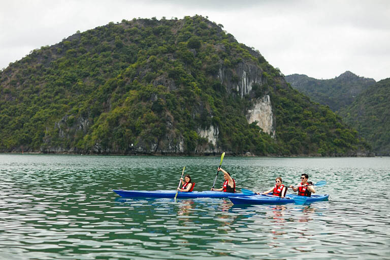 – 12h45: Quý khách thưởng thức bữa trưa hấp dẫn, trong khi du thuyền khám phá các địa điểm ở vịnh Hạ Long- vịnh Lan Hạ. Tiếp theo là tham quan hang Sáng Tối- nơi lý tưởng để bạn có thể chèo thuyền kayak.
