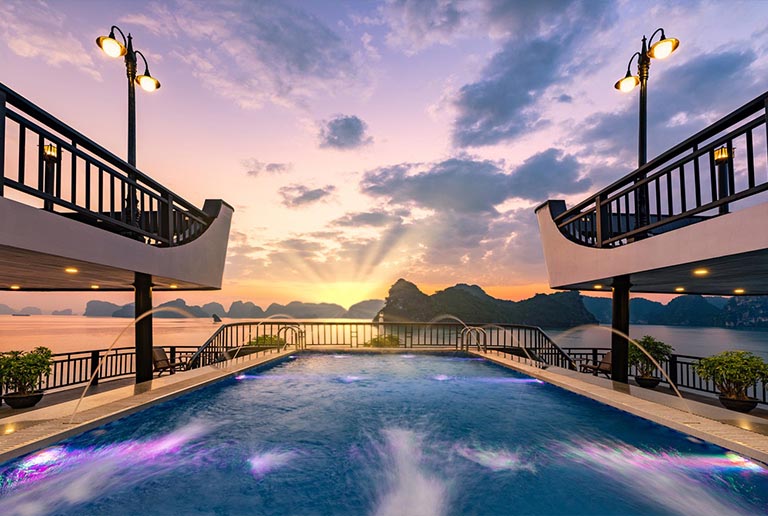 – 17h00: Quý khách trở lại du thuyền, ngắm cảnh hoàng hôn và thư giãn.