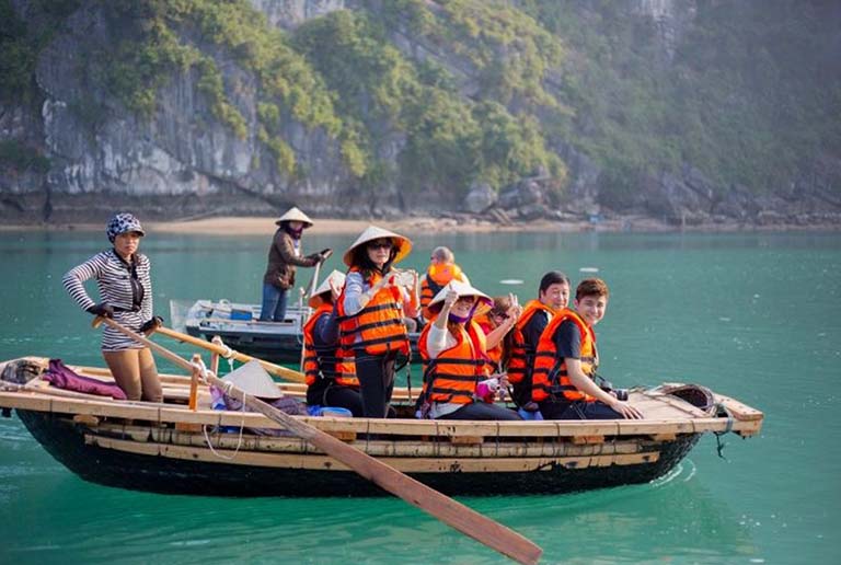 – 08h00: Quý khách đến khu vực Hang Sáng- Tối nơi được mệnh danh là vùng lõi của vịnh Lan Hạ. Bạn sẽ được ngắm phong cảnh hữu tình với làn nước xanh trong, dãy núi đá vôi tuyệt đẹp,… Quý khách tự do chèo thuyền kayak hoặc ngồi thuyền nan do người dân địa phương chèo.