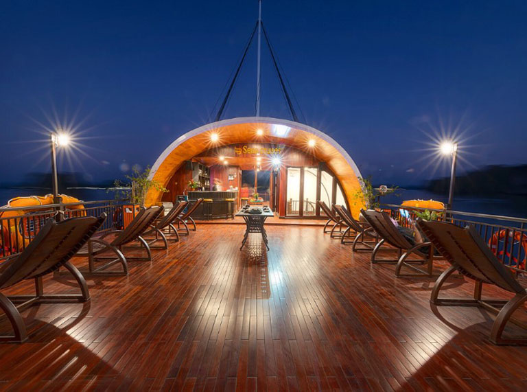 Nếu là người yêu thích các du thuyền và muốn trải nghiệm kỳ nghỉ mới lạ trên vịnh Hạ Long, vịnh Lan Hạ thì đừng bỏ qua du thuyền Sena. Mỗi chi tiết đều có sự kết hợp tuyệt vời giữa nét đẹp truyền thống văn hoá Việt với sự sang trọng, tinh tế. Các tiện nghi như nhà hàng, spa, thư viện, sundeck,… chắc chắn mang tới những cảm xúc chạm tới trái tim.