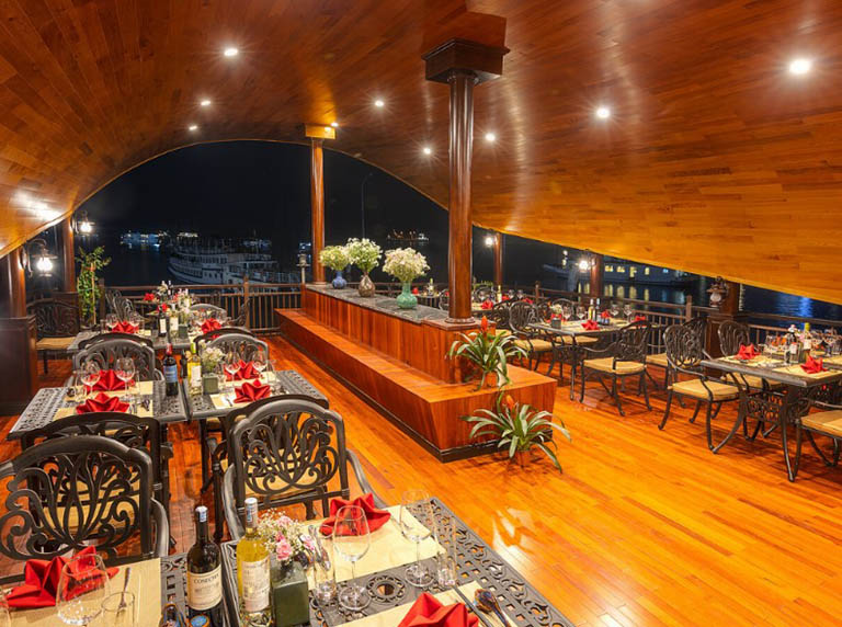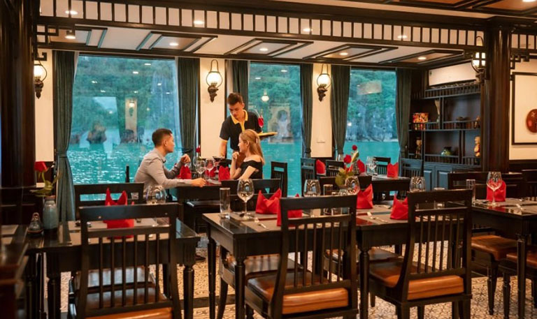 – Các bữa ăn trên tàu là sự kết hợp của nhiều nguyên liệu bao gồm cả hải sản. Nếu bị dị ứng với bất kỳ thực phẩm nào hoặc yêu cầu chế độ ăn kiêng riêng, bạn cần thông báo trước cho ban quản lý du thuyền.