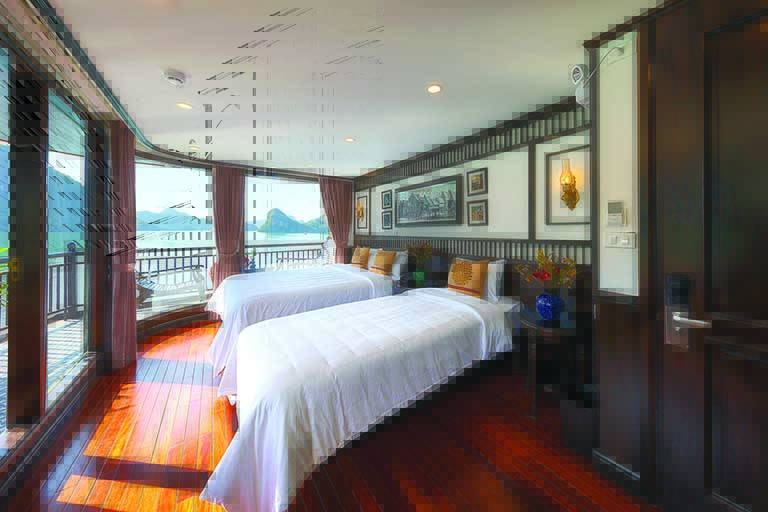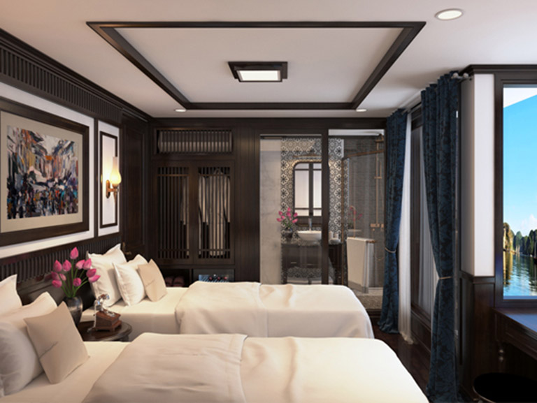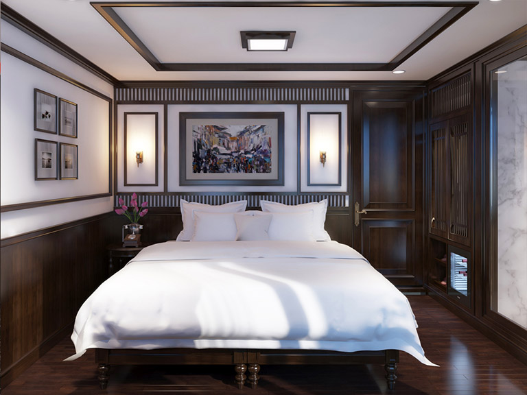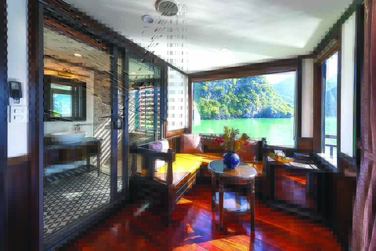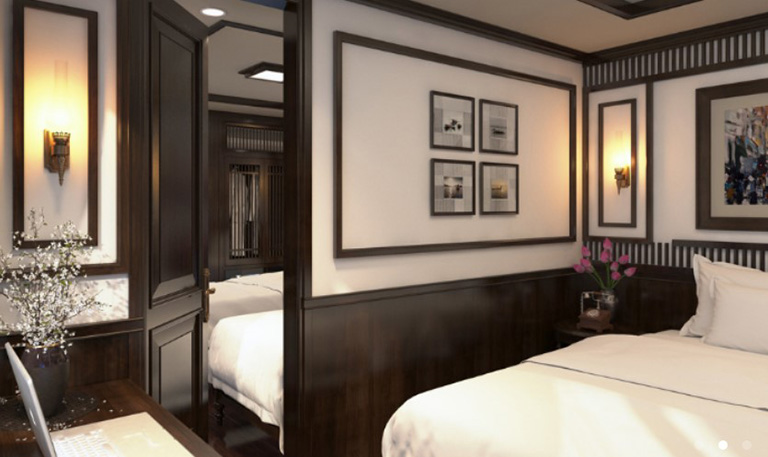 – Phòng nghỉ sang trọng trên du thuyền với đầy đủ tiện nghi.