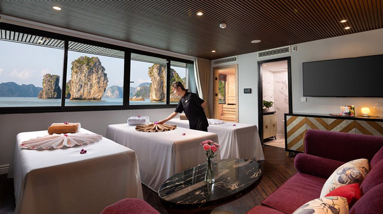 Sau một chuyến đi dài, du khách còn được tận hưởng liệu pháp thư giãn và làm đẹp ngay trên du thuyền Stellar of the Sea. Đội ngũ chuyên viên giàu kinh nghiệm sẽ giúp bạn có những phút giây thực sự tuyệt vời, tiếp thêm nguồn năng lượng mới cho cơ thể.