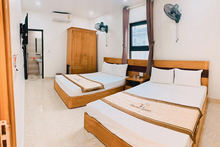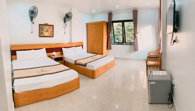 – Phòng hướng biển 2 giường: Diện tích khoảng 25m2, view hướng biển. Có 2 giường lớn chứa tối đa 4 khách.