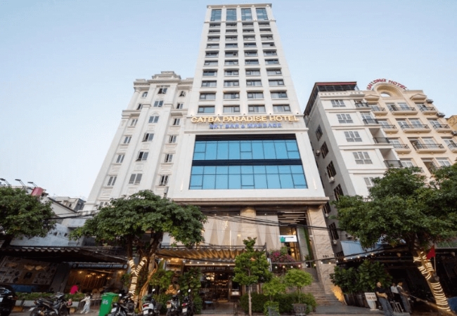 Nằm trên con đường ven biển sầm uất 1/4, Paradise Hotel là một khách sạn Cát Bà gần biển nổi bật với 90 phòng nghỉ hiện đại. Thiết kế sử dụng nhiều vật liệu kính giúp tối ưu hóa tầm nhìn ra biển và các hòn đảo đá vôi hùng vĩ. Khách sạn tạo ấn tượng mạnh mẽ nhờ sự kết hợp giữa tiện nghi sang trọng và nét văn hóa địa phương đặc sắc.