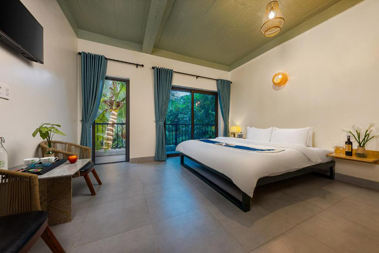 Tuy số lượng ít nhưng thiết kế ở đây lại rất độc đáo. Đó là 3 loại bungalow với hình dạng, diện tích khác nhau: Bungalow Tam Giác, Bungalow Tiny House và Bungalow Woodhouse. Toàn bộ những căn nhà nghỉ đều sở hữu ban công riêng, view thẳng ra hồ nước. Bên cạnh đó, Blue Lagoon Homestay có thêm 1 nhà hàng phục vụ ăn sáng, đồ uống ngay trong khuôn viên vườn nên rất thuận tiện.