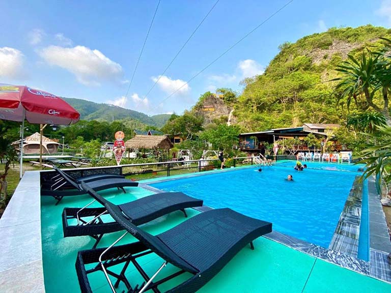 Bên cạnh những căn phòng sạch sẽ, thoải mái, thì Cát Bà Tropical Retreat còn nhiều khu vực riêng biệt giúp du khách có thêm trải nghiệm. Ví như bể bơi, nhà hàng nhiệt đới, skybar, khu camping, BBQ, cắm lửa trại,… Muốn ra biển chơi, bạn chỉ cần đi vài bước chân là đến ngay bãi biển Roi (hay bãi Chút Chít theo cách gọi của người địa phương). Bãi biển này còn tương đối hoang sơ, không đông đúc như nhiều bãi tắm khác.