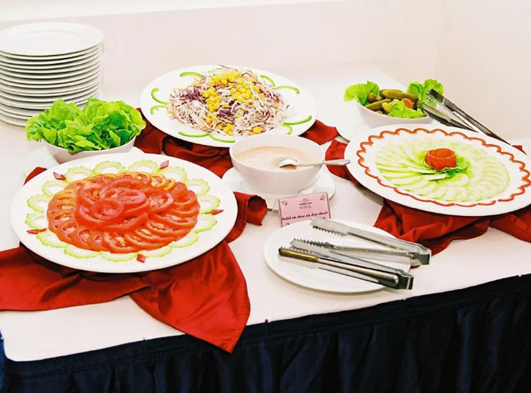 Giá đồ ăn Buffet thấp nhất khoảng 300.000 đồng/khách (Giá bao gồm thuê sân riêng cho đoàn từ 40 khách trở lên, phí dịch vụ, VAT. Giá chưa bao gồm đồ uống).