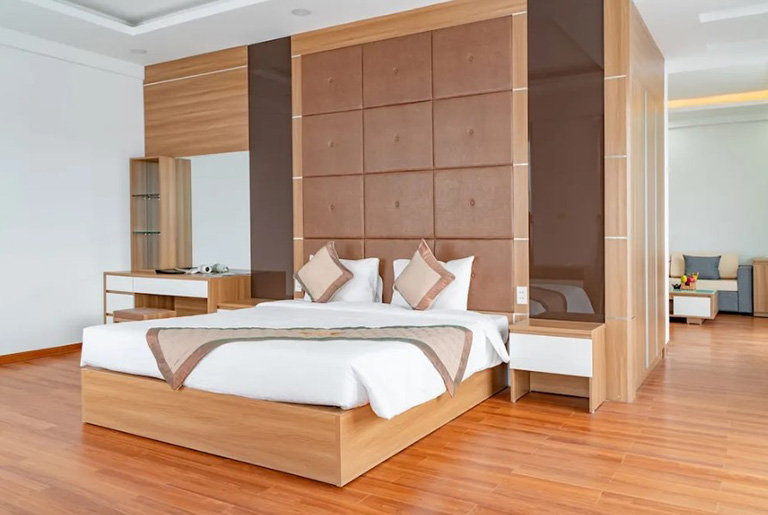 – Phòng Suite Hạng Tổng Thống: Diện tích khoảng 55m2, có ban công, tầm view hướng biển. Có 1 giường đôi cực lớn dành cho 2 người.