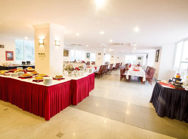 Nhà hàng Red Sail trên tầng 2 sẵn sàng phục vụ các món ăn truyền thống của Việt Nam, món châu Á đến châu Âu từ các đầu bếp lành nghề. Bạn có thể thưởng thức bữa ăn cùng bạn bè, người thân trong không khí thoáng mát tại nhà hàng ngoài trời.