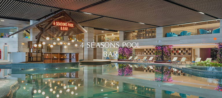 Quầy bar bên hồ sẽ mang đến cho bạn ly cocktail thượng hạng cùng đồ ăn đặc biệt thoải mái để thư giãn ở bể bơi. Giờ mở cửa: Từ 10h- 22h. Địa điểm: Tầng 3 – Flamingo Grand Cat Ba.