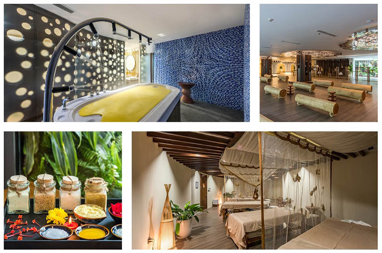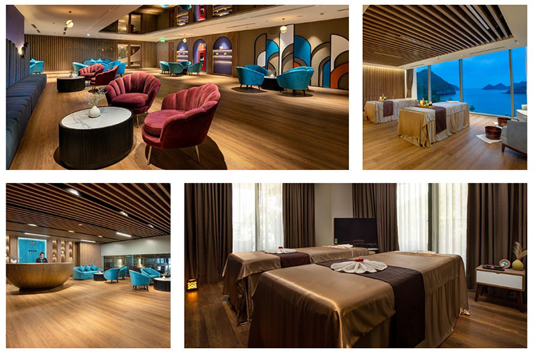 + Khu massage – trị liệu với phòng massage chân, phòng tắm Vichy, phòng massage đơn – nhóm – VIP, cung cấp các gói trị liệu massage thư giãn sử dụng các loại tinh dầu, sản phẩm 100% từ thiên nhiên.
