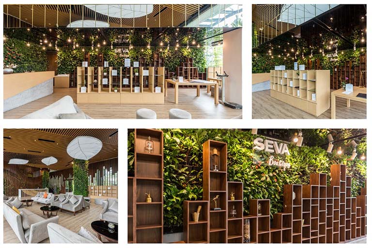 Seva Boutique là nơi tư vấn khách hàng về các loại mỹ phẩm, quy trình chăm sóc sức khỏe và sắc đẹp tại nhà. Từ 9h00- 22h30. Sức chứa khoảng 200 khách. Địa điểm: Tầng 1A, Forest in the Sky.