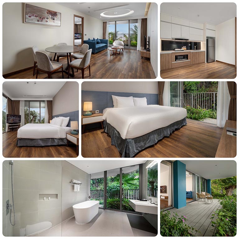 – Deluxe Ocean View: Diện tích khoảng từ 30- 35m2, view hướng biển, có 1 phòng ngủ, số lượng người thích hợp từ 2- 4 người.