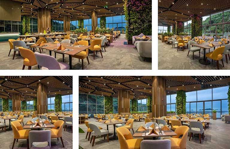 Nhà hàng Sun sẵn sàng phục vụ 3 bữa buffet sáng, trưa, tối được chế biến bởi những đầu bếp chuyên nghiệp nhất. Ngoài ra, nhà hàng còn có đồ uống và đồ ăn nhẹ phục vụ cả ngày. Giờ mở cửa: Từ 6h30- 22h, sức chứa 380 khách. Địa điểm: Tầng 6 – Tòa Flamingo Grand Cat Ba
