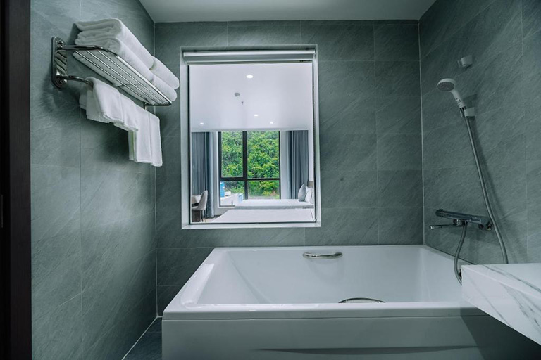– Khách hàng Huu- tháng 8/2024:” Vị trí trung tâm, ngay gần quảng trường, tiện đi ăn đi chơi và ra các bãi biển Khách sạn có buffet sáng, mình dậy 9h30 nhưng khách sạn vẫn hỗ trợ ăn sáng. Phòng sạch, mới, thiết bị trong phòng tốt Mình ăn 1 bữa tối ở khách sạn, thấy khá ok và tiện, đỡ phải tìm quán ăn, đồ ăn tươi ngon Bể bơi khá chill”.