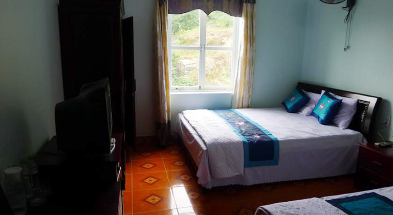 – Phòng Gia đình nhìn ra Núi: Diện tích khoảng 22m2, view hướng núi, có 2 giường đôi lớn dành cho 3 người.