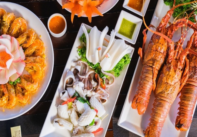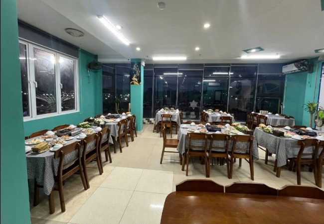 Ngay tại khách sạn, du khách có thể thưởng thức bữa sáng buffet hoặc các bữa chính với thực đơn hải sản phong phú. Từ những món đặc sản như tu hài, bề bề đến cá song tươi rói, tất cả đều được chế biến bởi các đầu bếp am hiểu hương vị biển cả, mang lại trải nghiệm ẩm thực đáng nhớ ngay tại chỗ.