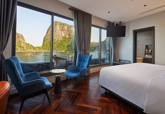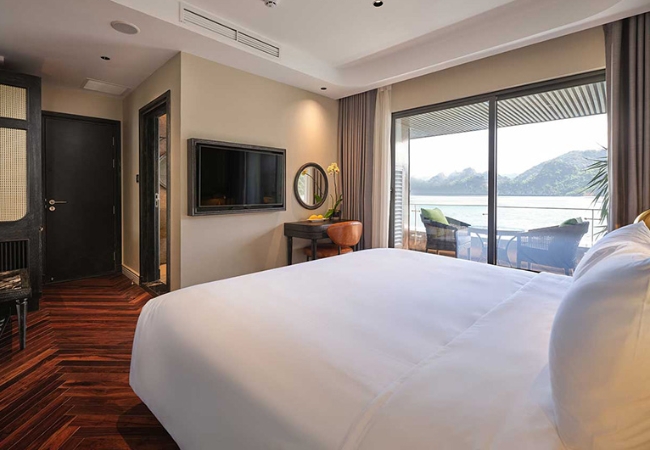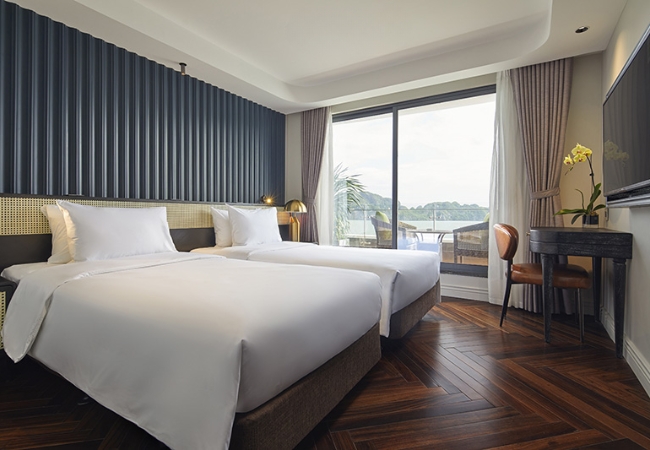 Có ban công riêng ngắm toàn cảnh vịnh, có thể ghép 2 phòng. Dành cho 2 người lớn và 1 trẻ em dưới 4 tuổi, trang bị 1 giường đôi hoặc 2 giường đơn. Phòng được thiết kế sang trọng, tối ưu ánh sáng tự nhiên từ cửa sổ lớn hướng biển.