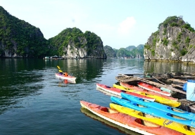 - Hoạt động chèo thuyền kayak khám phá hang động và khu vực núi đá vôi hùng vĩ độc đáo kỳ thú. Du khách được tận tay chèo kayak giữa làn nước xanh trong vắt của vịnh Lan Hạ yên bình. Cảm giác tự do lướt trên mặt nước ngắm cảnh thiên nhiên hoang sơ khó quên mãi mãi.