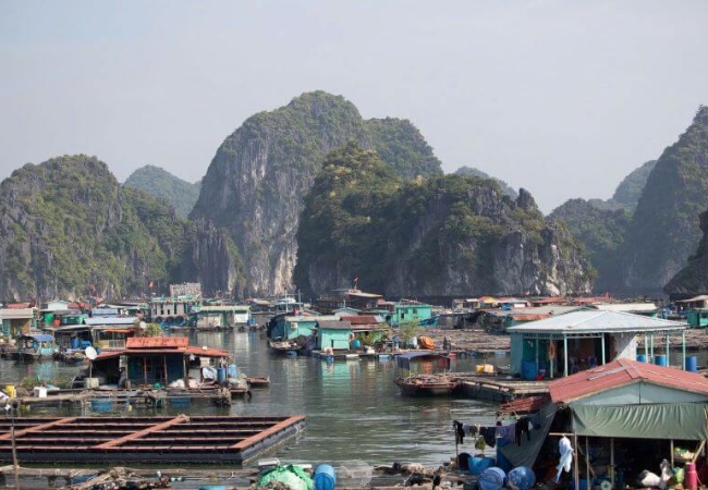 - 11h30: Tàu bắt đầu khởi hành hải ngoạn qua làng chài nổi Cái Bèo lịch sử lâu đời nhất. Đây là một trong những làng chài có quá trình hình thành từ rất sớm tại Vịnh Bắc Bộ rộng lớn. Du khách được nghe giới thiệu về đời sống sinh hoạt độc đáo của cư dân làng chài nơi đây qua nhiều thế hệ.