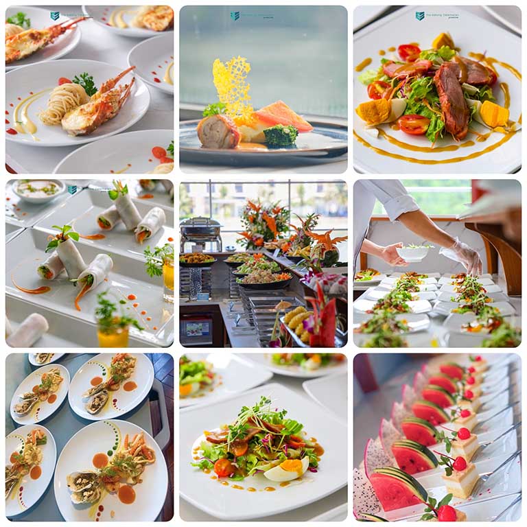 Một trong những điểm nhấn quan trọng của chuyến hành trình sắp tới là bữa trưa cao cấp được phục vụ trên du thuyền Catamaran. Thực đơn đa dạng, phong phú từ tiệc buffet đến set menu, la carte menu thay đổi linh hoạt. Tất cả đều do những đầu bếp hàng đầu thực hiện với nguồn thực phẩm tươi ngon, kết hợp cùng đồ uống hảo hạng mang lại hương vị khó quên.