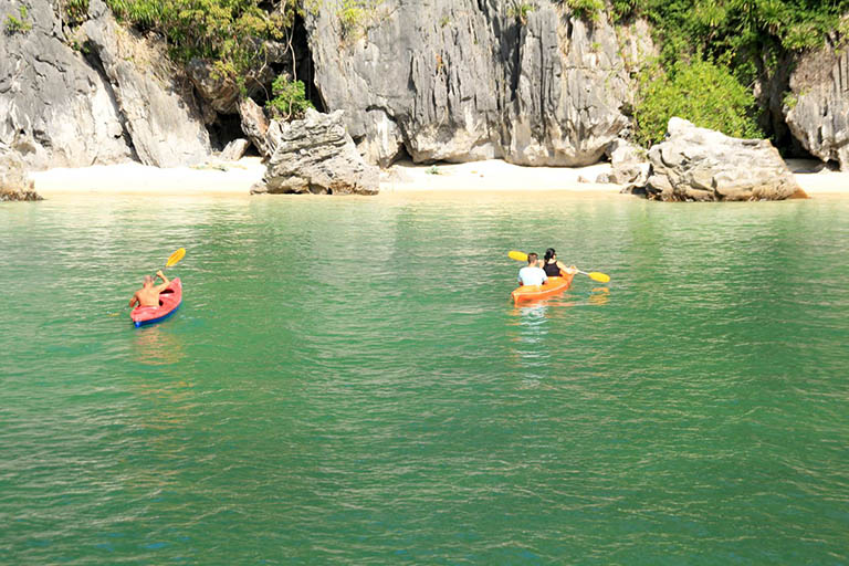 – 9h30: Quý khách tham gia vào hoạt động chèo thuyền kayak/sup tự mình điều khiển thuyền qua các chân núi đá, ngắm cảnh sắc sinh động của thế giới dưới mặt nước, len lỏi qua hang Tai Kéo.