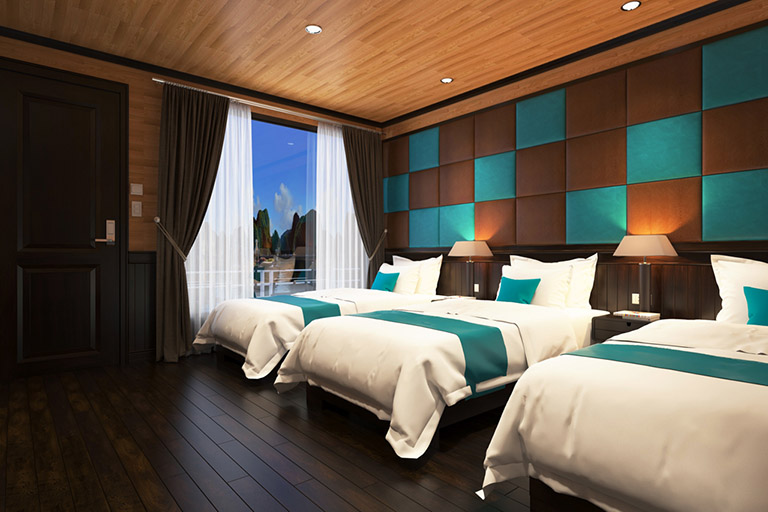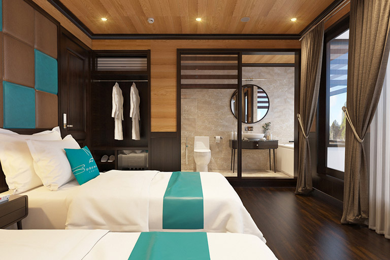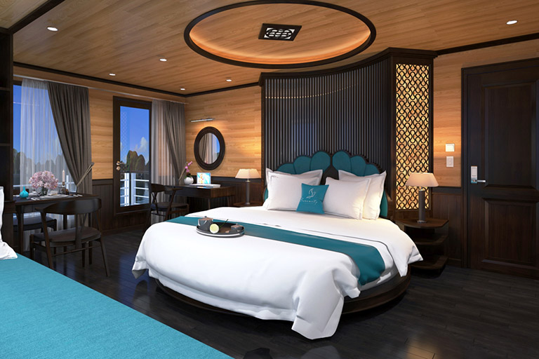 Ngoài tour du thuyền Serenity 5 sao thăm quan vịnh Lan Hạ 1 ngày, bạn cũng có thể đăng ký các tour nghỉ dưỡng 2 ngày 1 đêm hoặc 3 ngày 2 đêm ở ngay trên du thuyền. Tìm hiểu thêm một số hạng phòng siêu đẹp dưới đây nhé.