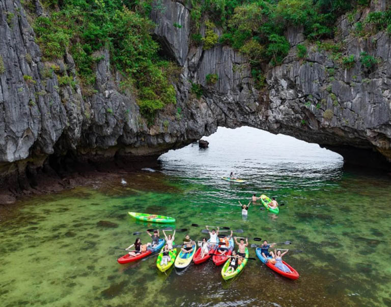 – 15h30: Du thuyền đến hang Tai Kéo. Bạn có thể tham gia nhiều hoạt động vui chơi, giải trí, thư giãn như chèo thuyền kayak, tắm biển, nhảy tàu,…